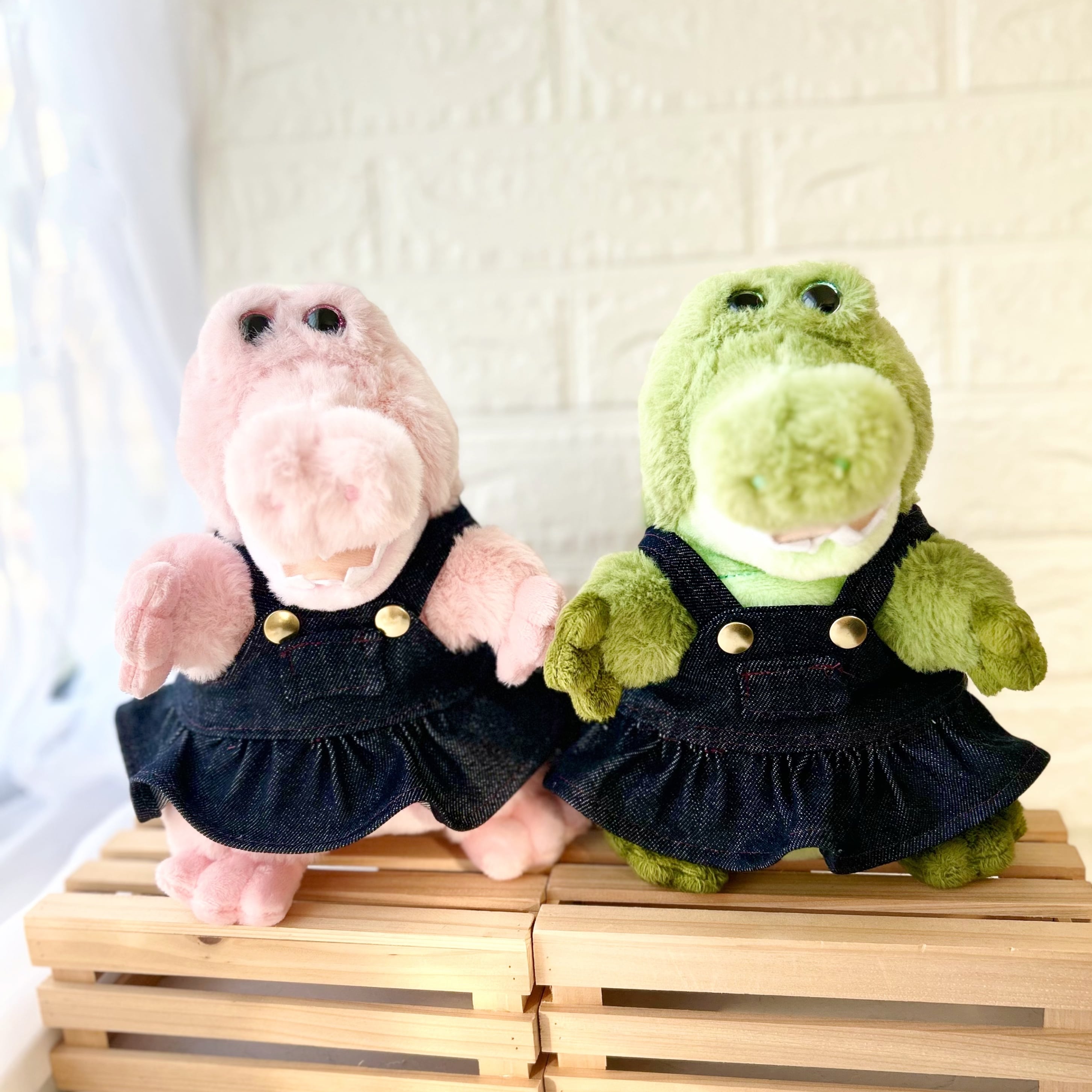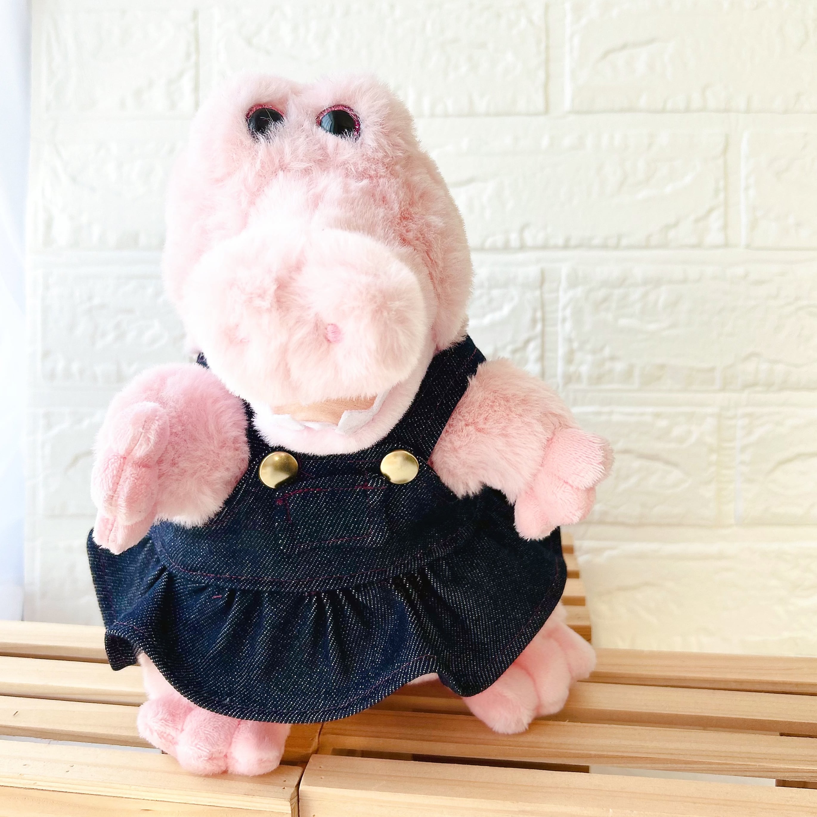 パペットワニサイズ。デニムサロペットスカート