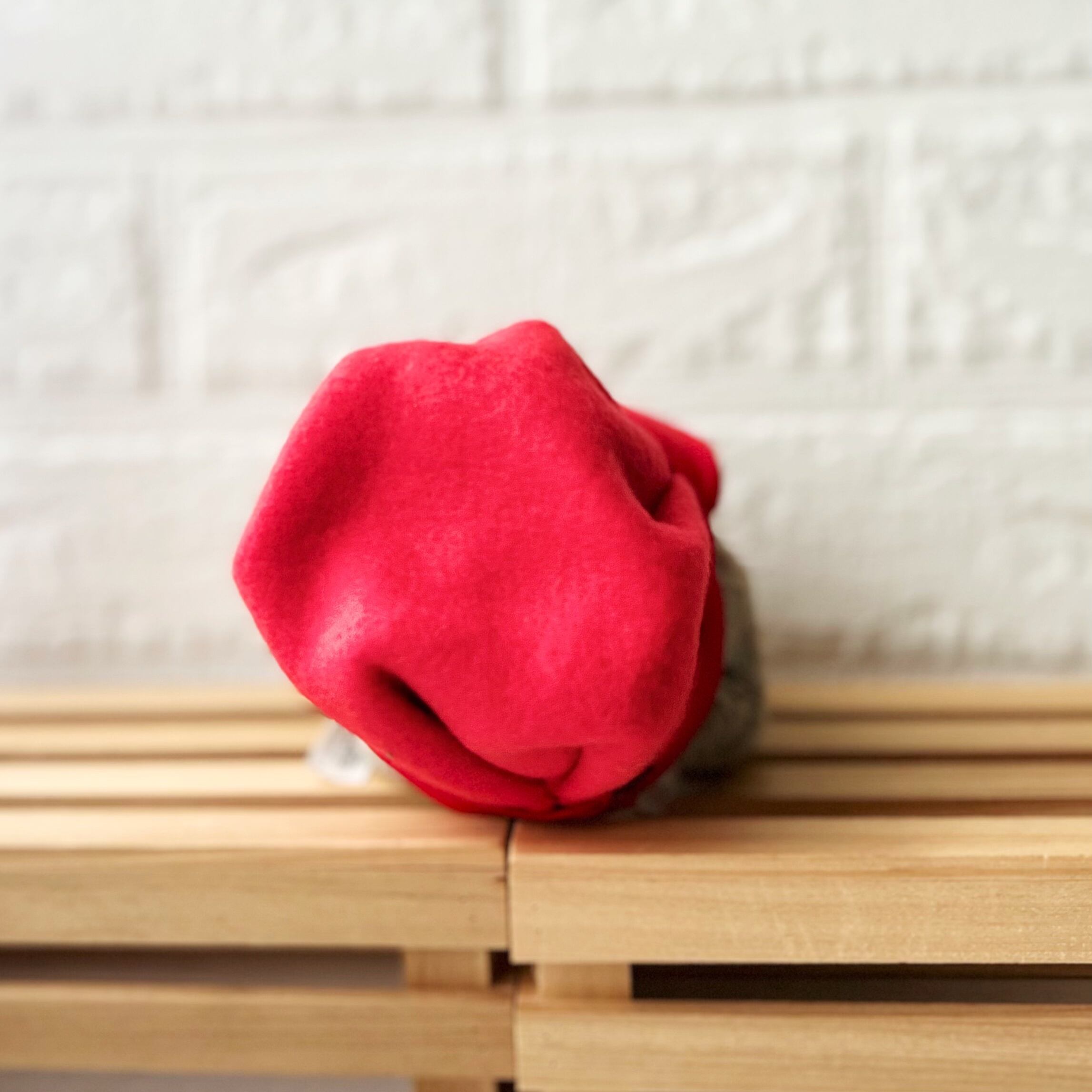 フリース生地の赤の可愛い帽子です。